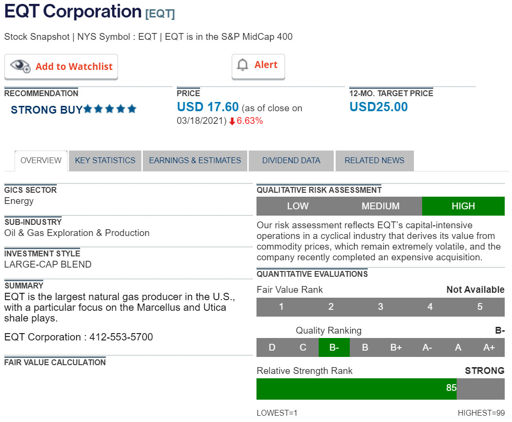 Stock of the Week - EQT - EQT Corporation - 12-month target price $25.00 - Oil & Gas Exploration & Production