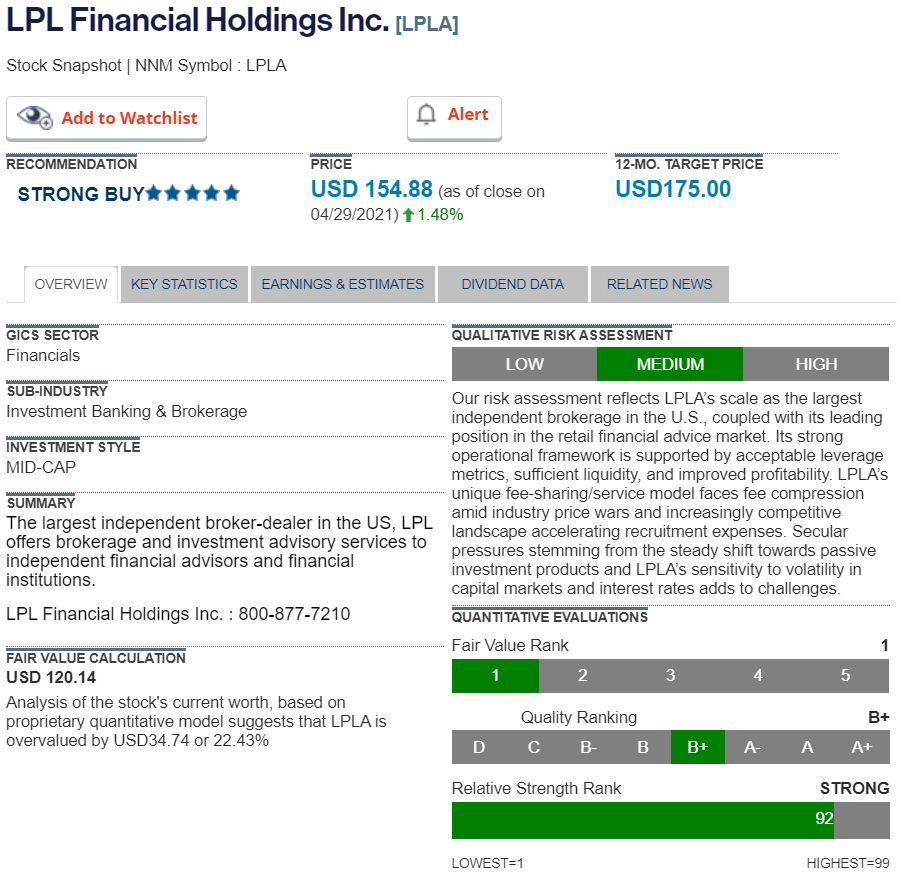 Stock of the Week - LPLA - LPL Financial Holdings Inc. - 12-month target price - Investment Banking & Brokerage