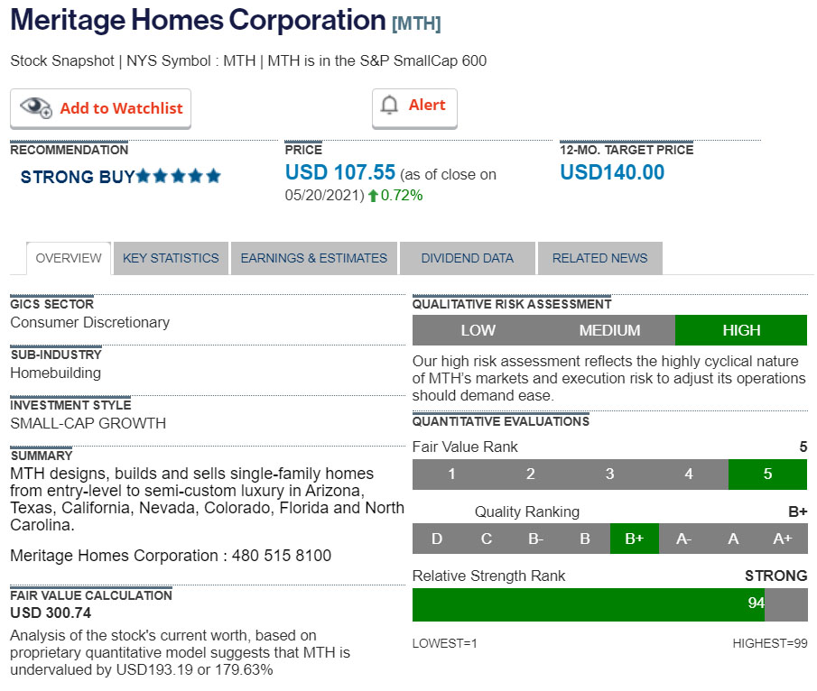 Stock of the Week - MTH - Meritage Homes Corporation - 12-month target price
