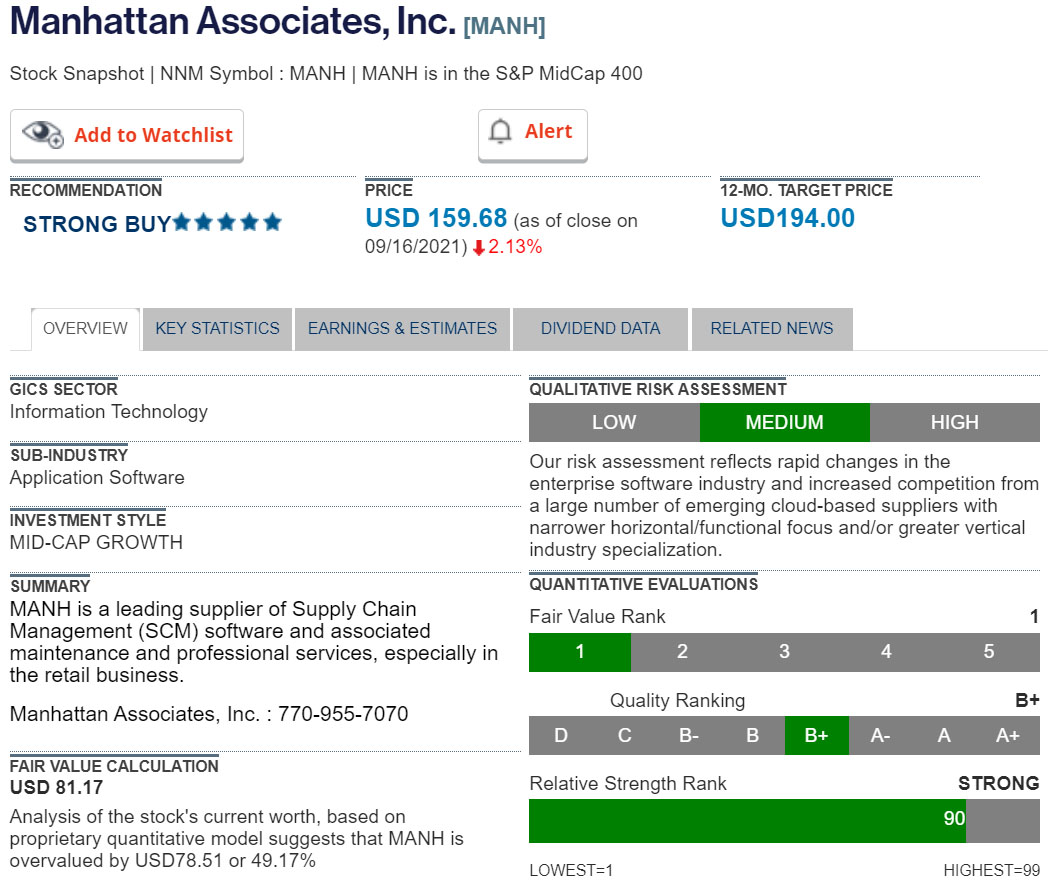 Stock of the Week - Manhattan Associates, Inc - 12-month target price