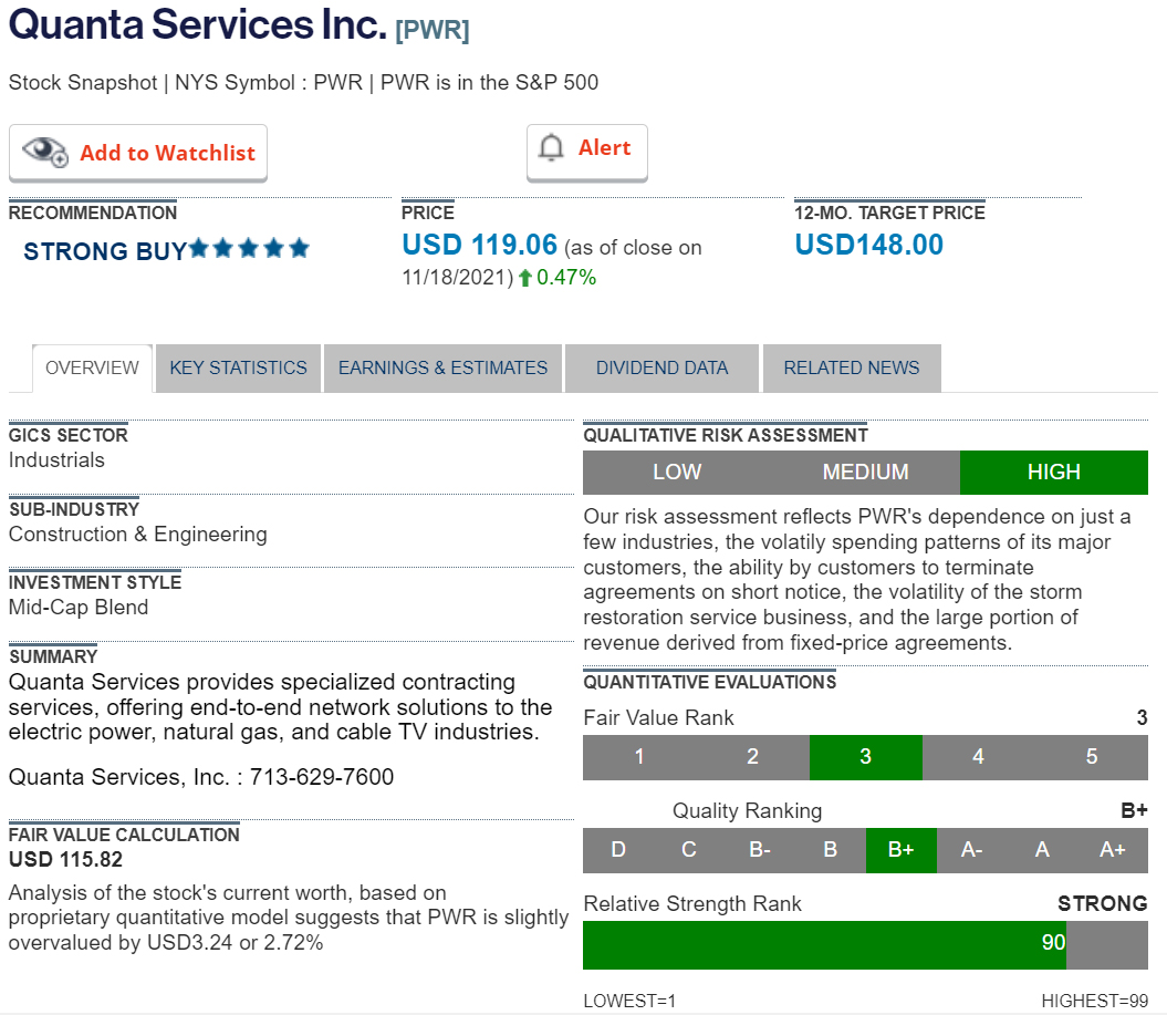Stock of the Week - Quanta Services Inc - 12-month target price